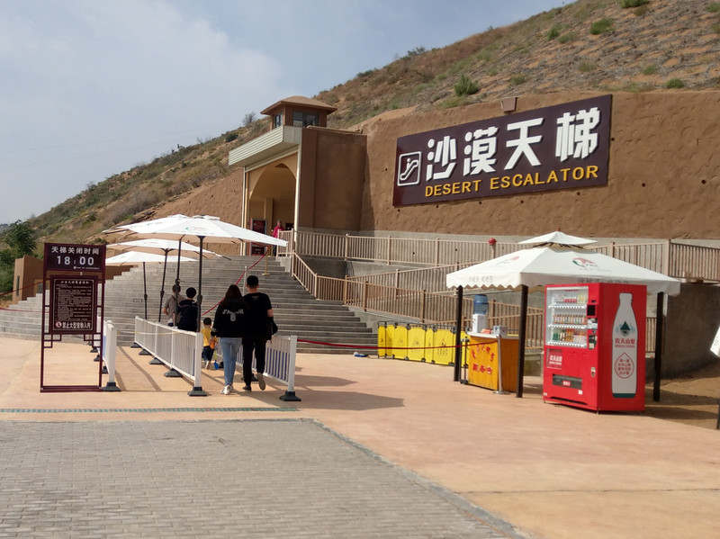再往前,總算是來到沙漠天梯。沙漠天梯連接黃河區及沙漠區,是前進沙漠區的必經途徑;兩區高度相差72公尺左右,相當於24層樓高,並由6部手扶梯銜接而成,長達160公尺。而天梯內分成三大段,由黃河、沙漠及星空區作分別。