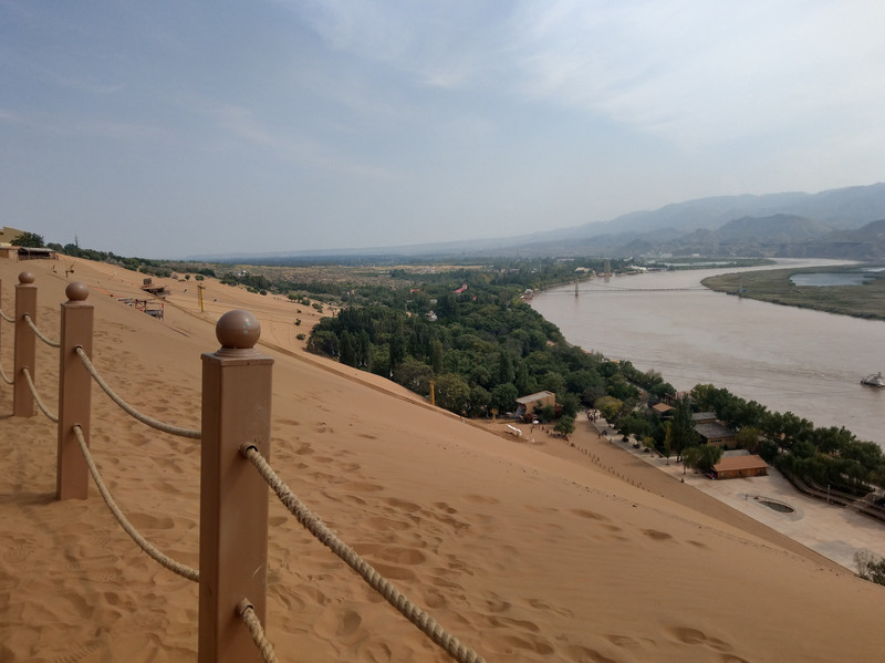 沙坡頭和我想像中、從資料中所理解到的相差很多,他是個非常商業化的門票景區,占地相當大,什麼陸海空的設施,像是飛索橫渡黃河、蹦級(高空彈跳)、快艇、羊皮筏子、滑沙、滑翔翼等等,應有盡有,你要說他是個遊樂園也不為過,他就是個老少咸宜的遊樂景區,花一張套裝門票,可以在裡面盡情的玩上一整天都不是問題。